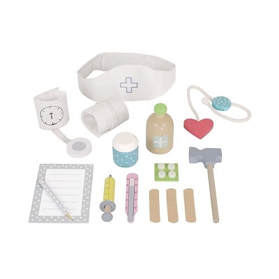 9. Drewniany zestaw lekarski firmy Jabadabado —>  KLIK. Wygląda bardzo zachęcająco. Maluch do tej pory lubi się bawić w lekarza. Mieliśmy kilka plastikowych zestawów i jeden drewniany. I taki drewniany służy nam do dzisiaj. Nasz pokazywałam Wam tu —>  KLIK.