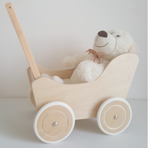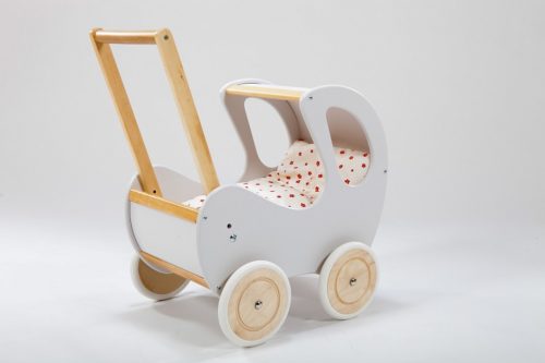 6. Drewniany wózek dla lalek firmy Babyconcept —>  KLIK. Bardzo zgrabny, w stylu retro. Dodatkowo można sobie dobrać pościel do wózka. Wygląda na solidnie wykonany i stabilny. A to bardzo ważne zwłaszcza w przypadku dzieci, które dopiero stawiają swoje pierwsze kroki. Taki wózek może być bowiem wykorzystywany również jako pchacz.