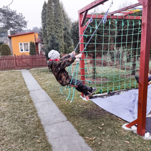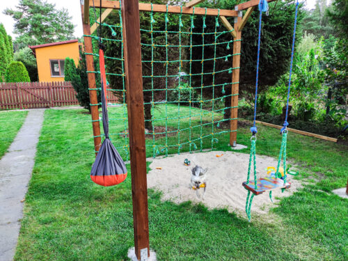 Małpiszon – zestawy tego producenta podobają nam się od dawna. Rozważaliśmy zakup takiego do domu, ale ostatecznie kupiliśmy klasyczną drabinkę i dodatkowo zawiesiliśmy linię do przechodzenia. Ale całkiem możliwe, że do nowego ogrodu kupimy właśnie coś takiego.