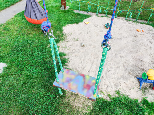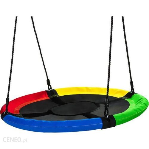 Bocianie gniazdo Multicolor – mamy je i nawet ja się na tym czasem huśtam ;) Nie jestem tylko pewna, czy to konkretnie ta sama firma, bo nasze ma to siedzisko jakby z grubej siatki. Na naszym Instagramie znajdziecie różne zdjęcia z tą huśtawką. Maluch bardzo lubi z tego korzystać.