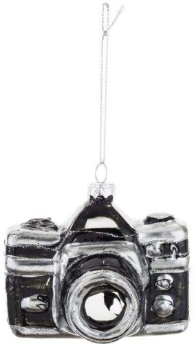 Bombka świąteczna Aparat fotograficzny – takiej jeszcze nie mieliśmy. Wprawdzie sama nie mam talentu do robienia zdjęć i jakoś niespecjalnie mnie to kręci (w przeciwieństwie do sztuki, głównie malarstwa, które uwielbiam), ale nie widzę przeszkód, aby sobie taką bombkę sprawić.