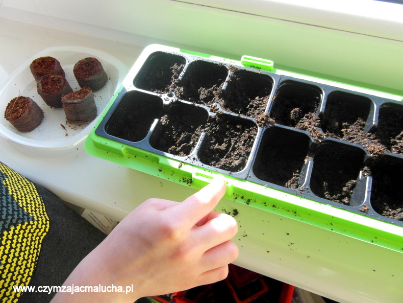 Po otrzymaniu książki, torfu i narzędzi dla mojego małego ogrodnika, tata Malucha dokupił doniczki, małą szklarnię i ziemię. Maluch zaprosił również do wspólnej zabawy swoją przyjaciółkę, którą mogliście poznać na naszym instagramie ;) Po skończonej zabawie dzieło Malucha wylądowało na parapecie w jego pokoju, a Natalka swoje skarby zabrała do siebie. Za tydzień planujemy kolejne sadzonki.