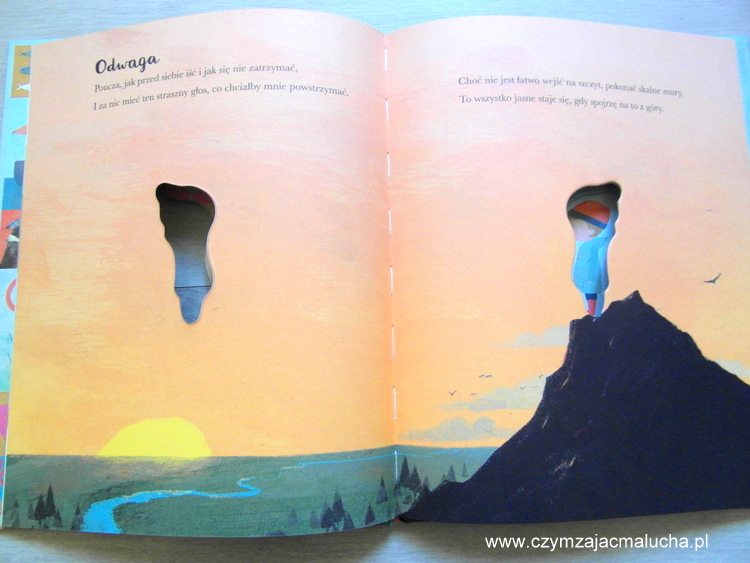 Ta książka zwróciła moją uwagę wyciętym kształtem dziecka, które pojawia się na każdej stronie. Lubimy z Maluchem takie dodatkowe atrakcje w książkach.