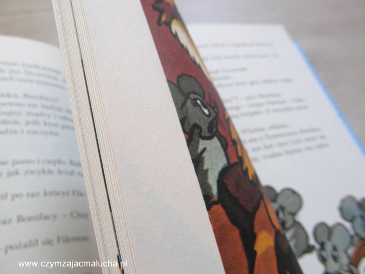 Ma twardą okładkę. Myślę, że może się sprawdzić już u młodszych przedszkolaków. Warto jednak mieć na uwadze to, że jest tu sporo tekstu. I nie każde młodsze dziecko będzie w stanie jednorazowo wysłuchać jednej bajki. Maluch bardzo długo nie lubił dłuższych tekstów.