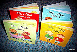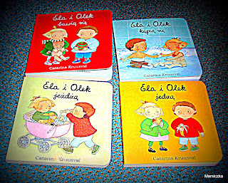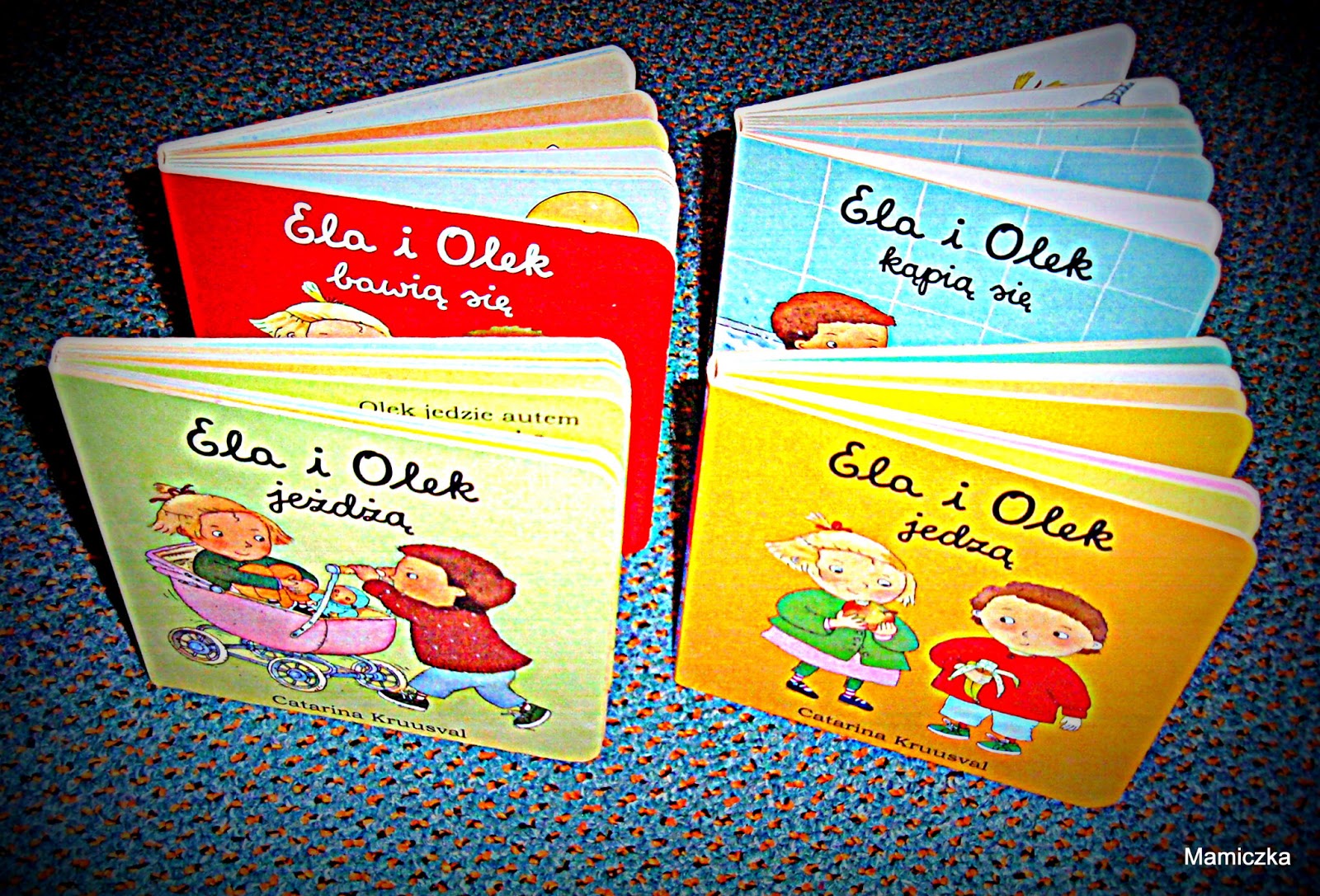 Dziś będzie książkowo. Tym razem pokażę Wam całą serię rewelacyjnych książek Catariny Kruusval “Ela i Olek”, Wydawnictwa Zakamarki. Do wyboru mamy “Ela i Olek jedzą”, “Ela i Olek bawią się”, “Ela i Olek jeżdżą” i ” Ela i Olek kąpią się”.