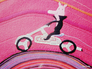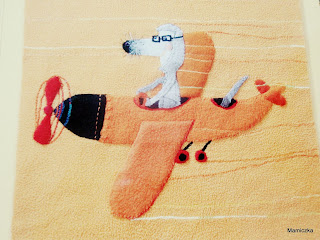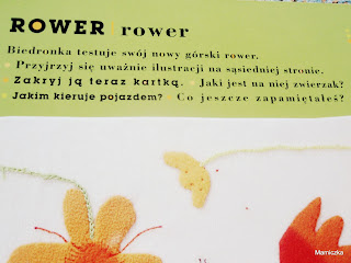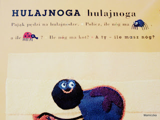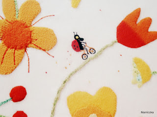 Znajdziemy w niej nie tylko samochód, czy autobus, ale również żabę w łodzi podwodnej, biedronkę na rowerze i mojego ulubionego pająka na hulajnodze. Jestem zauroczona tymi ilustracjami. Są to zdjęcia wyszywanek, które ma się ochotę pomiziać. Rzadko spotykam takie obrazki.