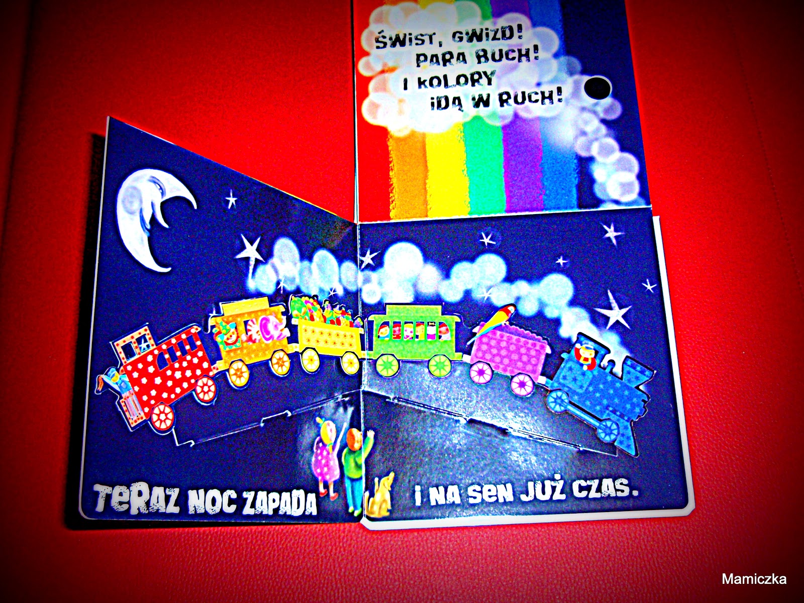Poznajemy w niej nie tylko zawartość poszczególnych wagonów, ale również kolory, m.in. fioletowy, zielony i żółty. Tekst książki jest rymowany, dzięki czemu łatwiej wpada do głowy.
